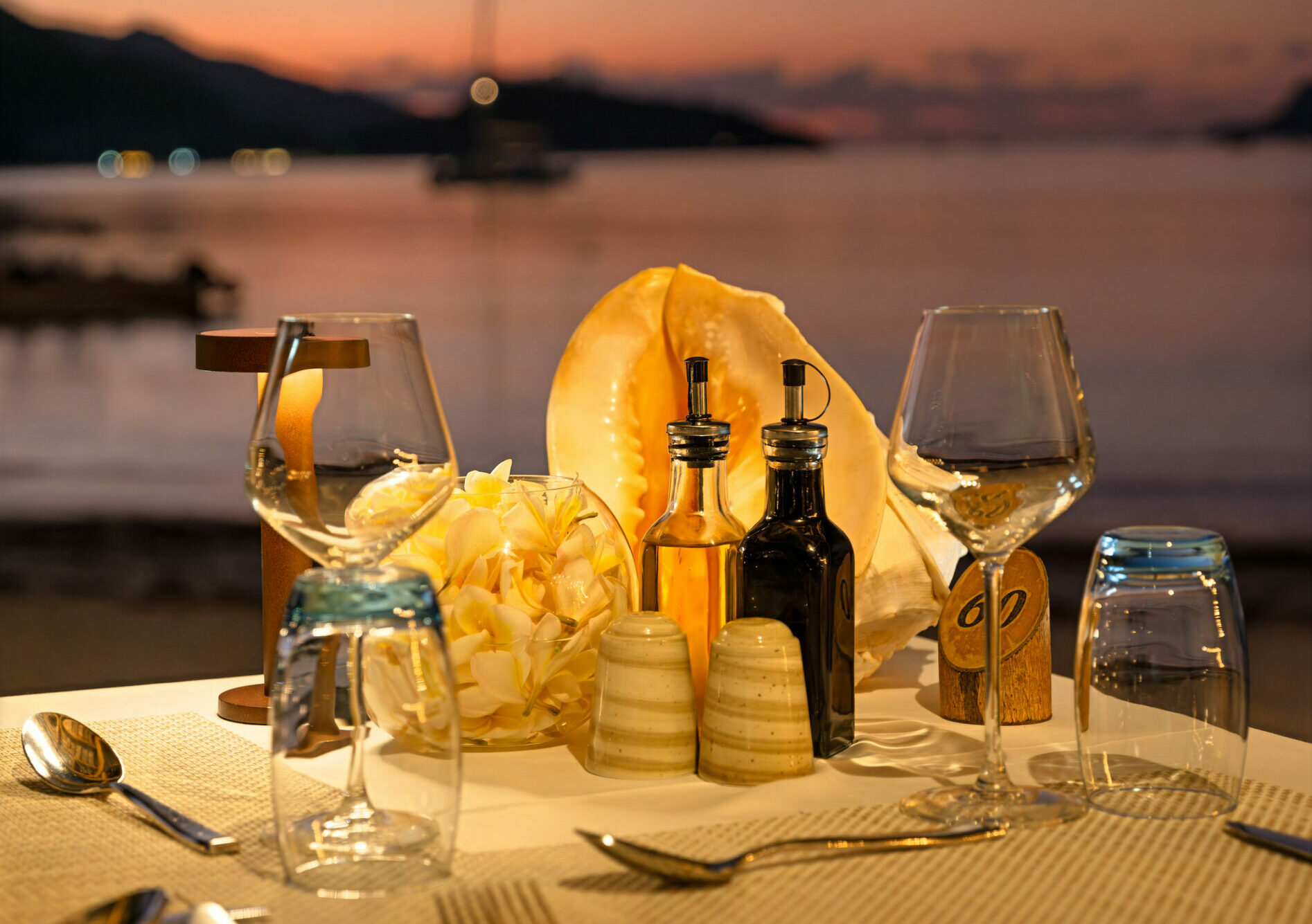 Créez et personnalisez votre propre expérience culinaire – des cocktails au coucher du soleil, barbecues ou des dîners privés soit au bord de la plage, au bord de la piscine ou sur le ponton.