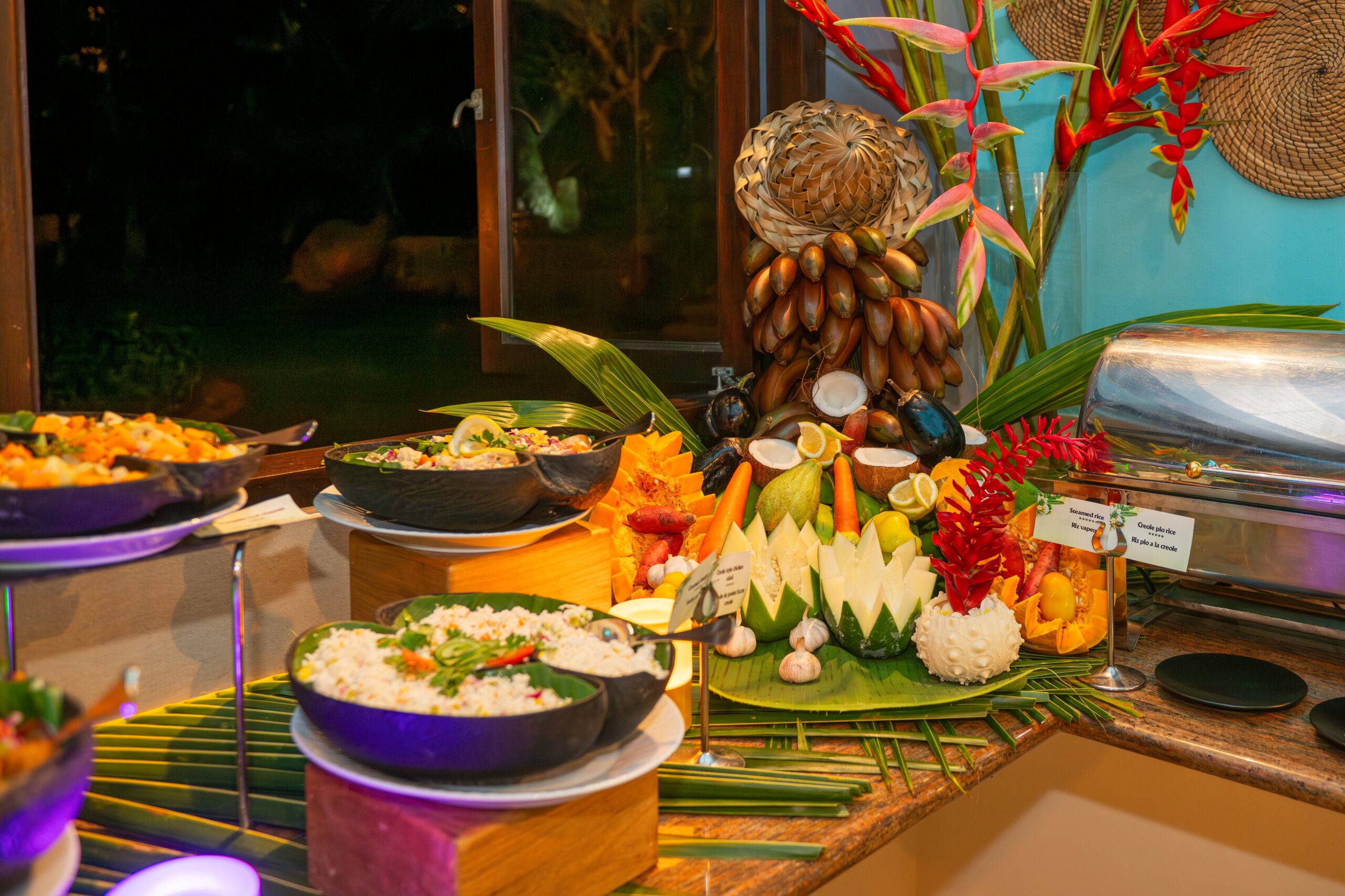 Attractions include live cooking of seafood right on the beach, weekly themed nights and spectacular barbecues. The special Creole night comes complete with a buffet of local cuisine, live entertainment and, on occasion, a Moutya dance. The hotel is happy to cater for guests with special dietary needs and also offers picnic lunches. Guests who go fishing may request the chef to cook their catch of the day.