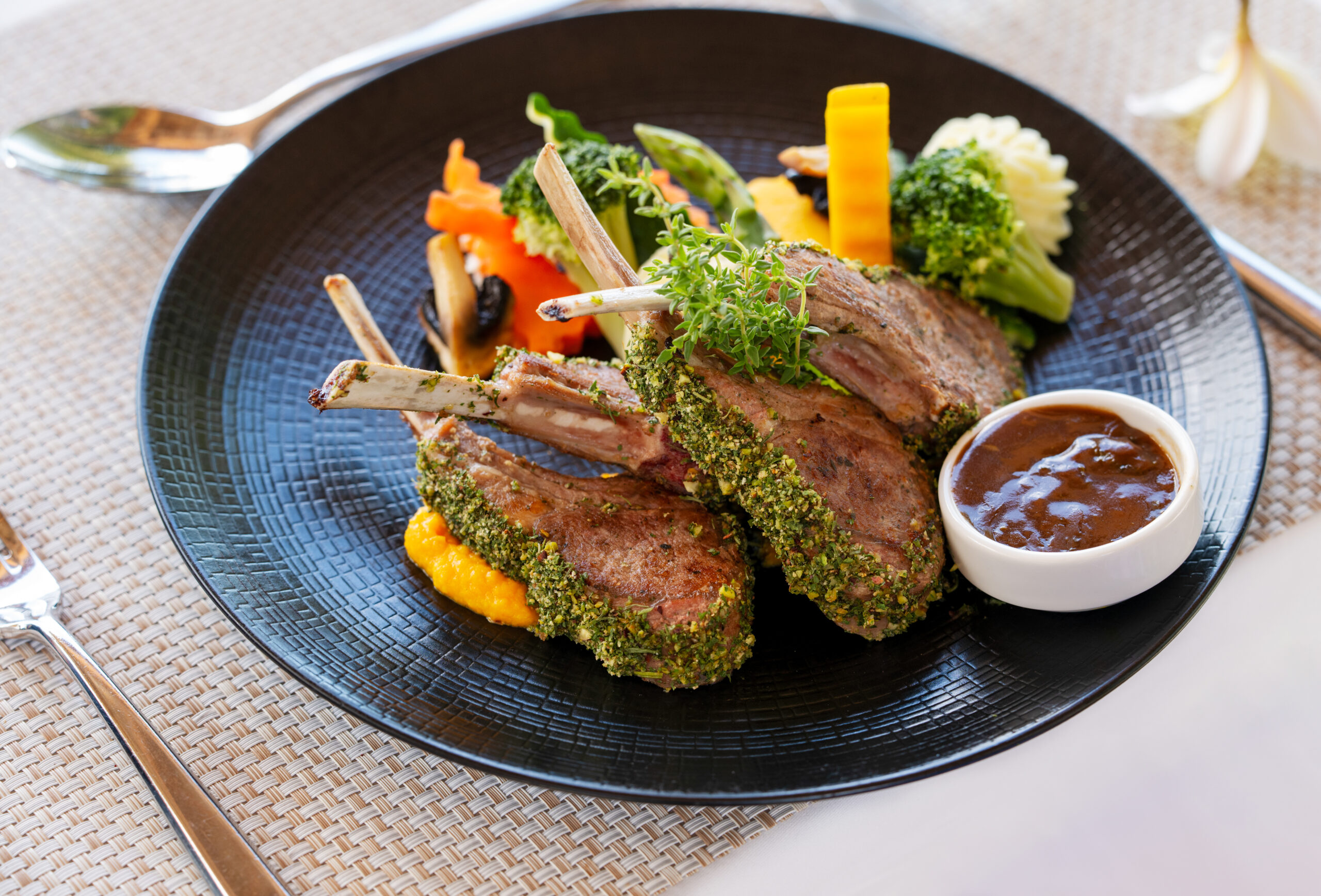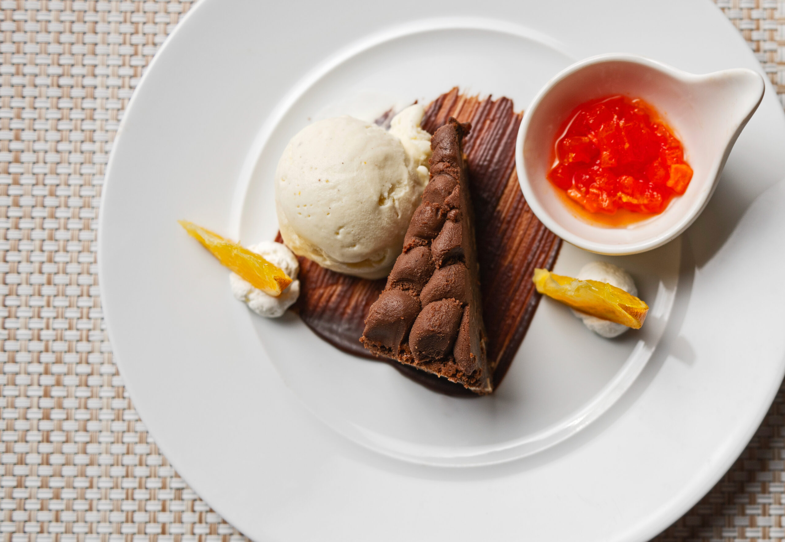 Located on the first floor by the bar, La Feuille d’Or, offers a breathtaking panorama and a more secluded atmosphere, ideal when the weather does not allow for outdoor dining.