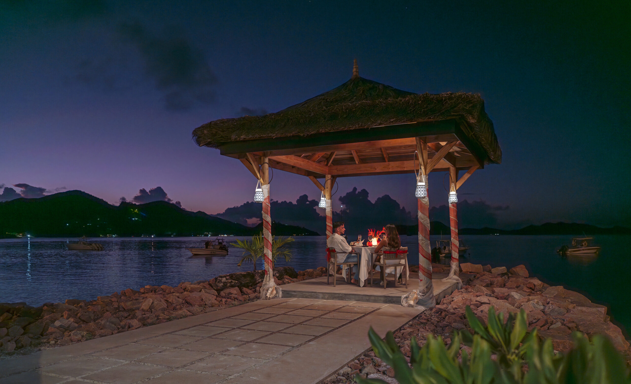 Create and customize your own dining experience, from sunset cocktails to a barbeque or private romantic candle light dining either by the beach, the poolside on the pontoon.